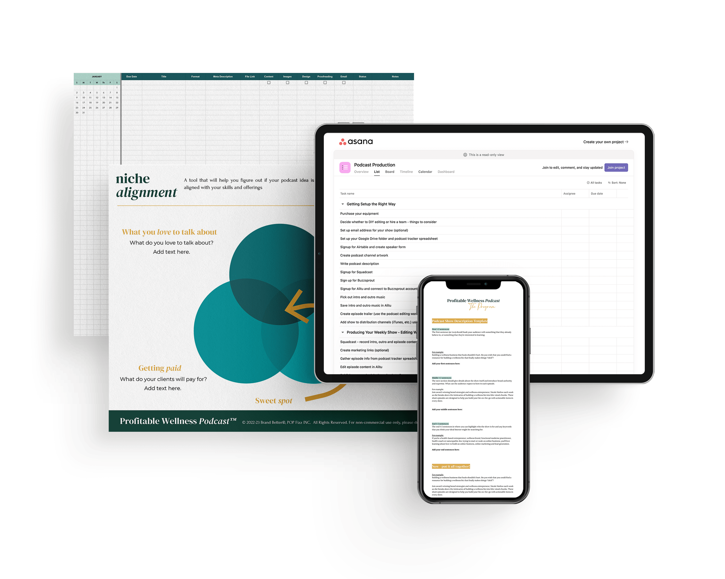 You will have lifelong access to the lessons through our online course platform. Our plug-and-play templates may be downloaded or saved to your Google Drive account, and our design templates may be saved to your Canva account. Your Profitable Wellness Planning Workbook can be downloaded to your computer and completed digitally, or printed out if you prefer the pen-and-paper approach (we do, too!).